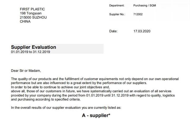 環(huán)境保護(hù)一直是人民關(guān)注的熱點(diǎn)話題,也是黨和國家高度重視的問題,打造“綠色品牌“”更是富事達(dá)奮斗的目標(biāo)。蘇州富事達(dá)塑業(yè)2019年年初開始,為某外資新能源企業(yè)提供環(huán)??裳h(huán)使用的塑料物流包裝,為客戶的包裝方案帶來了很大的便利,同時(shí)也節(jié)省了大量的物流費(fèi)用。經(jīng)過一年的合作,富事達(dá)榮幸的被客戶評定為“A級供應(yīng)商”。